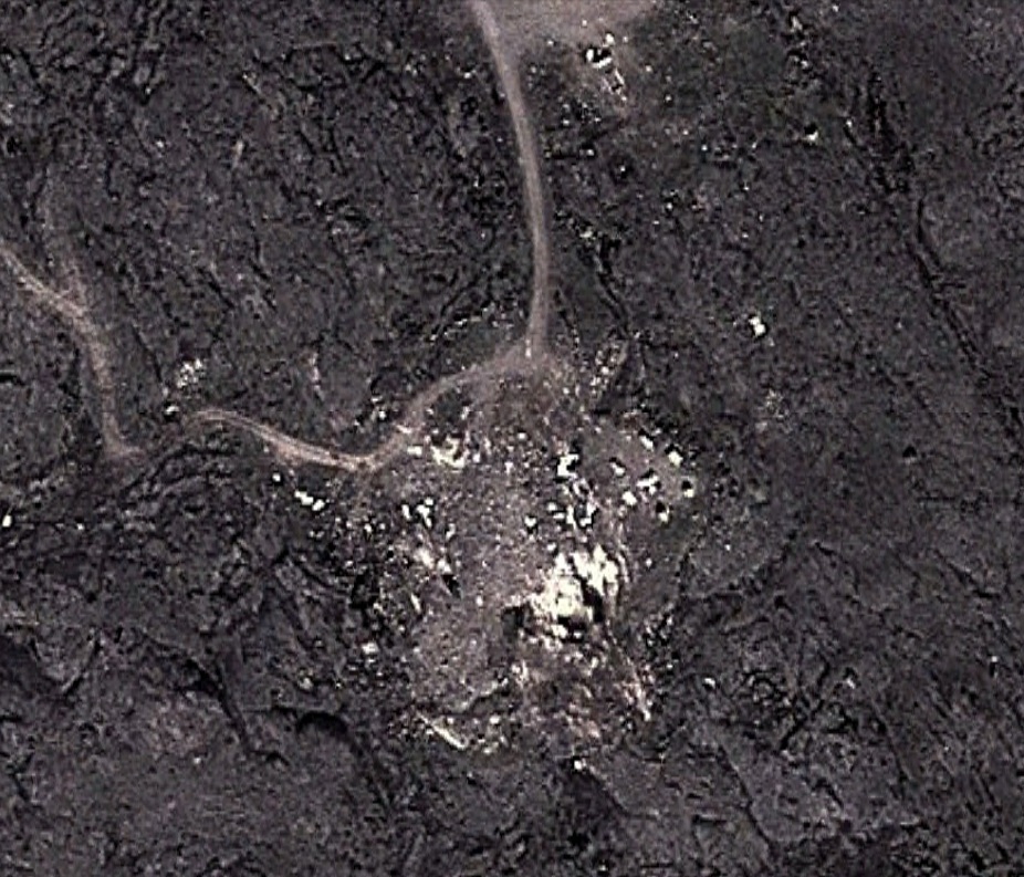 Площадка, где размещалась тропосферная станция № 10 линии Pole Vault. Хорошо видны фундаменты антенных сооружений.