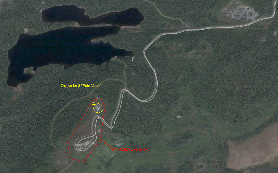 На нижнем снимке показан участок местности, где располагалась тропосферная станция (отд.3) линии "Pole Vault"