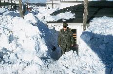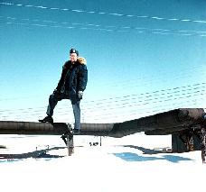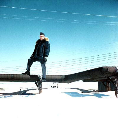 031 Лейтенант Пол Янковский стоит на трубах отопления. Апрель 1956 года |