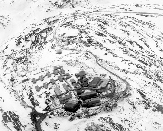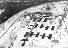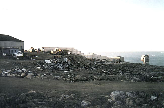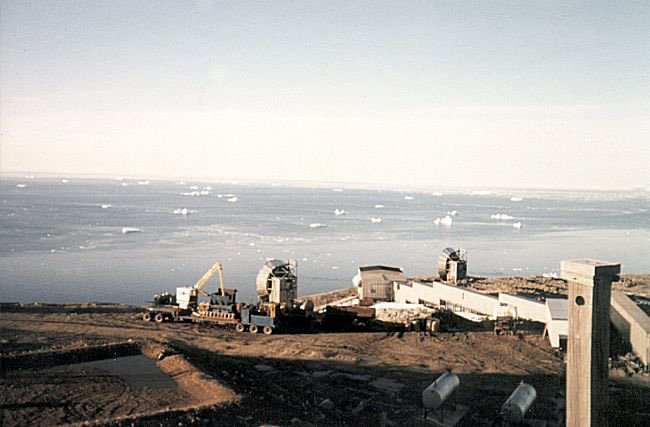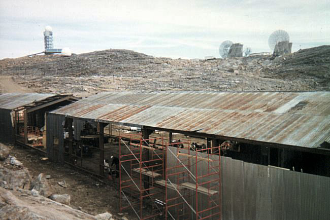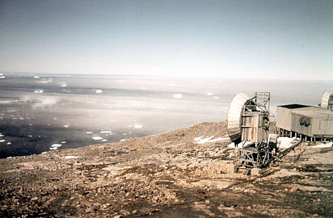011 Сентябрь 1999. Справа - одна из оставшихся 9 метровых антенн тропосферной связи направленная на остров Бреворт. |