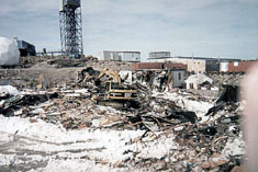 004 После демонтажа четырех жилых блоков. Крайнее слева здание - дизельная. В центре - техздание связи. Сентябрь 1999 |