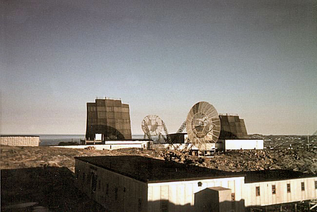 010 Сентябрь 1999. Одна из оставшихся 9 метровых антенн тропосферной связи направленная на остров Бреворт. |