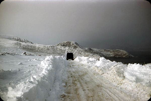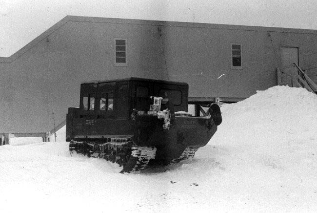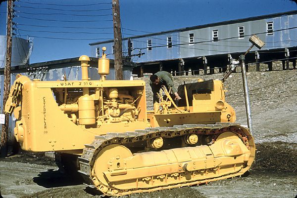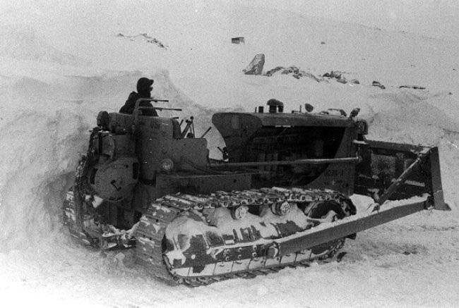010 Бульдозер расчищает дорогу. В те времена кабин на тракторы еще не ставили. Март 1954 года |