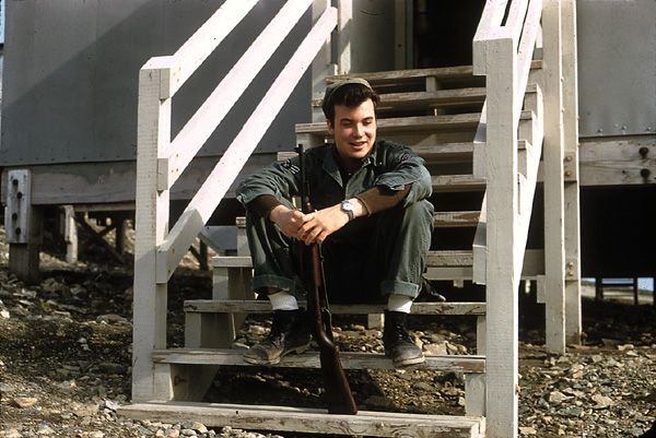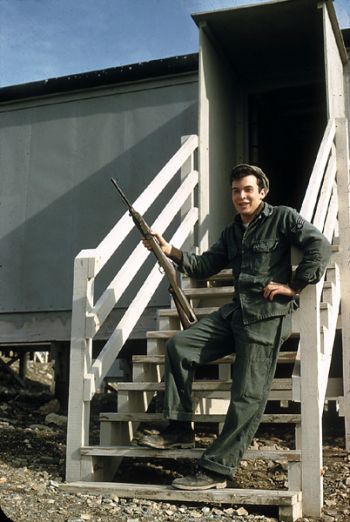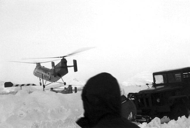 016 Вертолет американских ВВС перевозит грузы и людей с нижней площадки на верхнюю. Декабрь 1955 года |