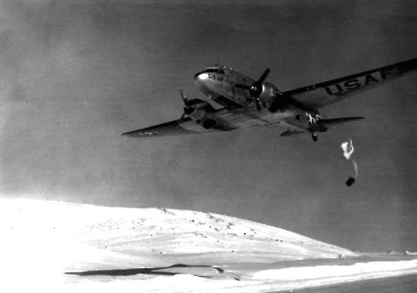017 Транспортный самолет С-47 сбрасывает почту. 17 апреля 1956 года |