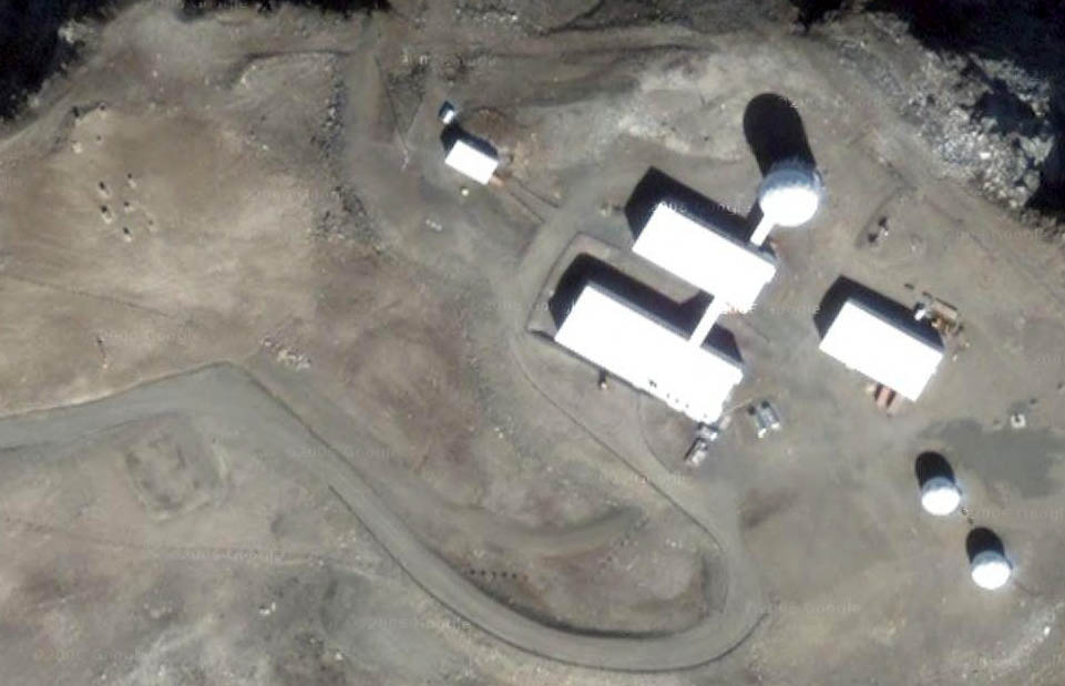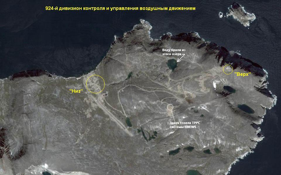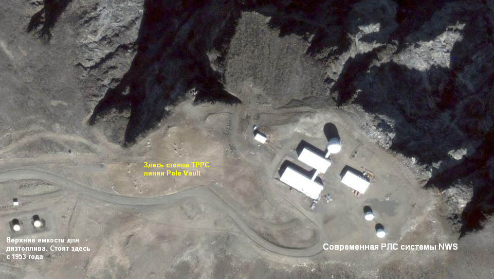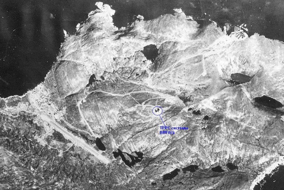 Последний снимок не спутниковый. Это снимок сделан с самолета в сентябре 1965 года, но помещен здесь потому, что на нем можно видеть антенны тропосферной станции относящейся к системе BMEWS (Ballistic Missile Early Warning System - система раннего предупреждения о запуске баллистических ракет).