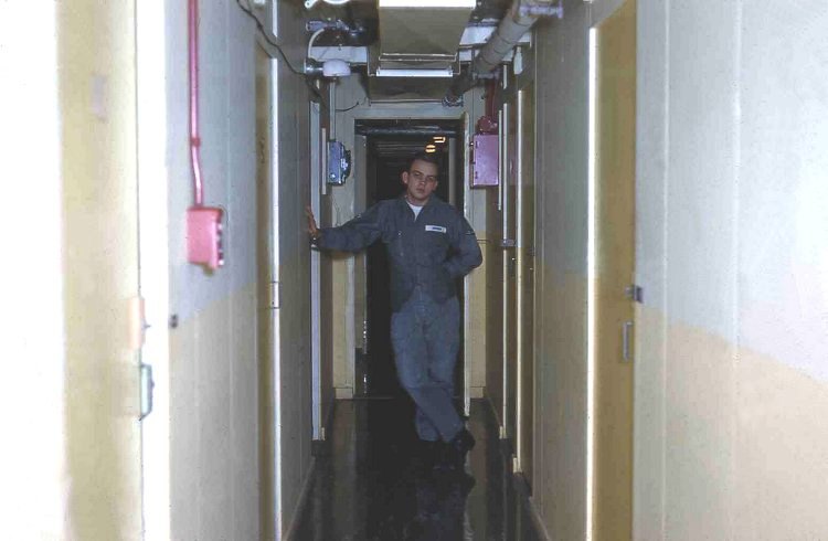 029 Том Ривс в одном из коридоров соединящих здания на площадке. Декабрь 1959 года |