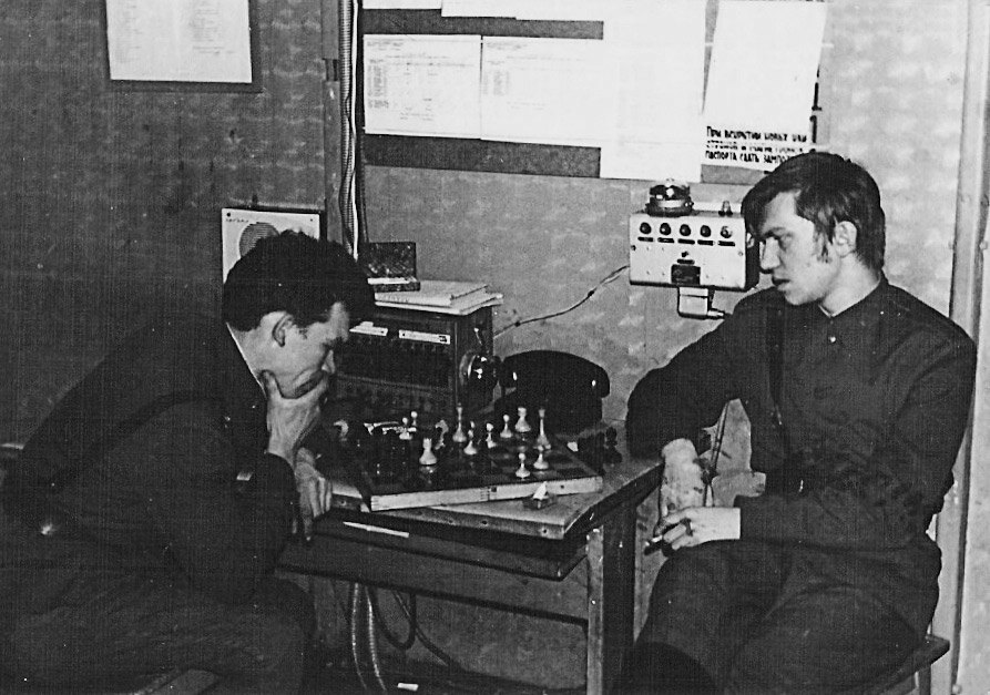 002 Шахматная партия. Пр-к С.Медведев и л-т Е.Давыдов. 1973 год |