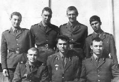 043 Июнь 1986 года, 1-й расчет 2-й смены: рядовые Пинчук, Бренер, Водинчар, сидят: ст.л-т Щепотин и ряд. Балдин |