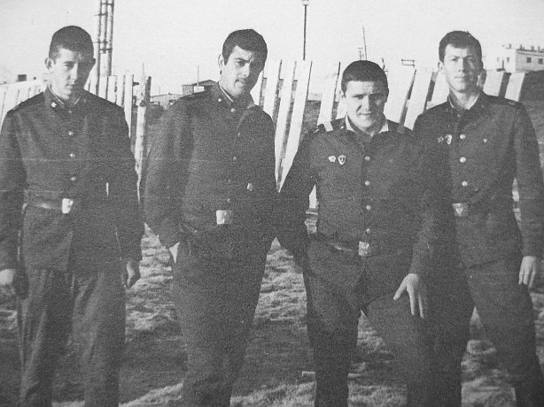 002 Сбор энергетиков. Ст. л-т Кукс В.В., инженер ТУСМ-5, л-т В.Косицин (Агат), л-т Беспелюхин, энергетик Граната, инженер ТУСМ 5, лето 1974