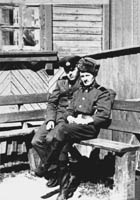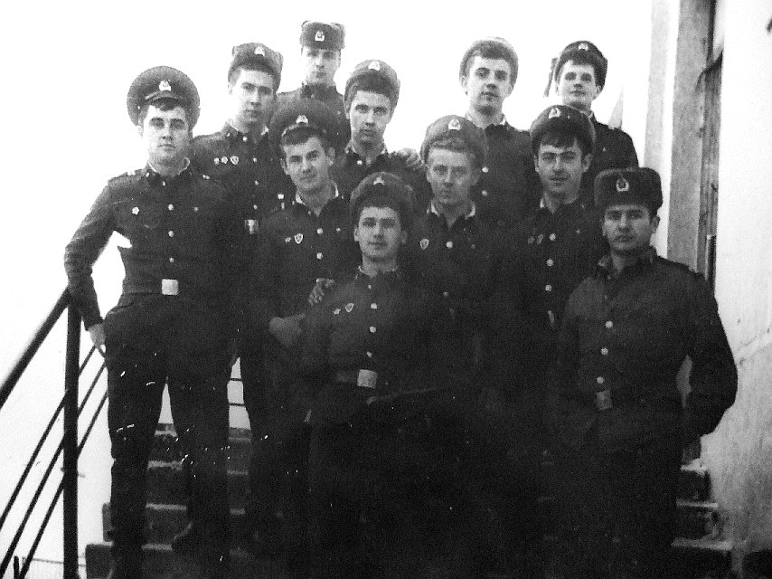 067 На крыльце здания. Ребята 1980-82гг. срока службы. сверху стоит Сергей(почальон по кличке Печкин), ниже Валер Черноусов, Каймаков, Лефтер, ?. Ниже мл.с-т Синяк, ефр.Соломаха, ?, Чахно. Снизу-?, Миронец Виктор. |