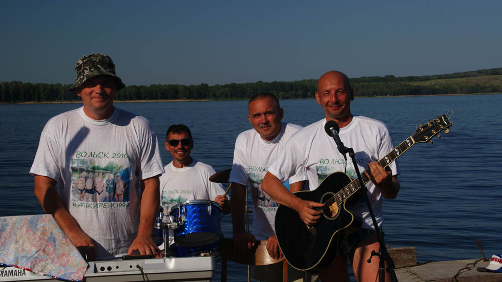 121 Ветераны "Агата", состав 1990 года. Встреча в июле 2011 года в городе Вольске. Клавишные - Хачатуров(236 ), ударные - Безруков(384), вокал - Юреев(384), соло-гитара - Фофанов(410). |