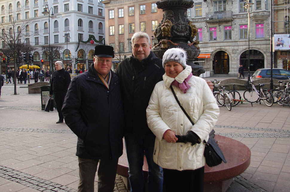 131 Встреча ветеранов «ВОЛГИ» (1980-82), Медведев Александр, Куприенко Сергей, Медведева Елена, январь 2012 г., Стокгольм, Швеция. |