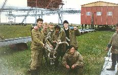 024 Слева-направо: Александр Бочкарев, Николай Чернышев, Александр Пшеничный, Николай Нагайцев. На заднем плане антенны в направлении "Чайка" |