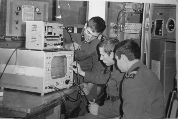 056 Регламентные работы тракта передатчиков:с-т В.Коваленко,л-т Н.Кириленко,с-т В.Гибавичюс. 1975 год.