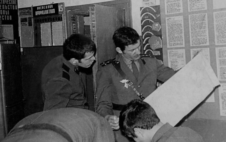 114 Ст. л-т Панченко, Гафаров, Строев - в центре. 1982 год |