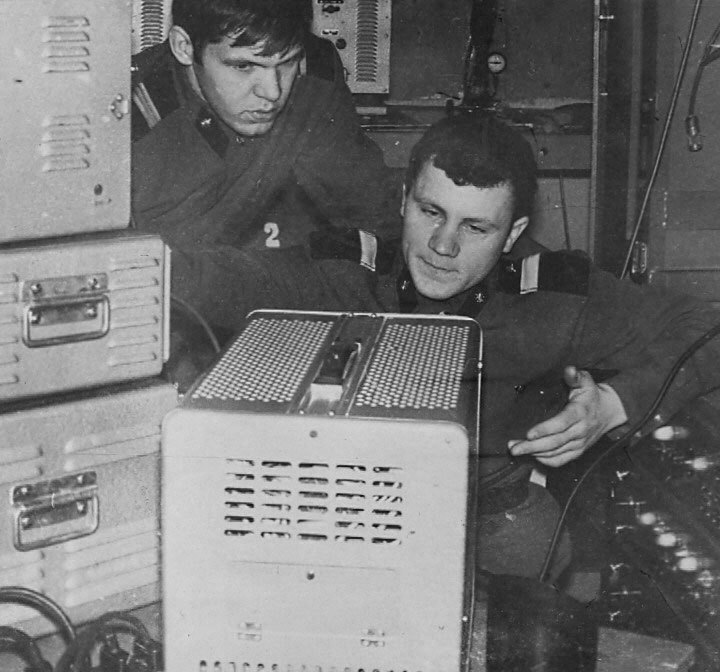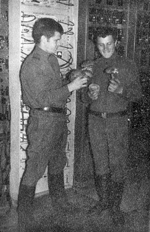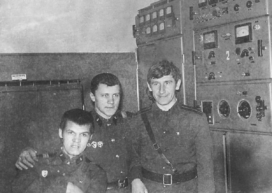 110 В октябре – ноябре 1972 года. Смена была усилена лейтенантом Маклаковым - инженером ЭТО, попавшим в опалу за пофигизм и собиравшегося домой. Слева направо Савичев, Козориз, Маклаков. |