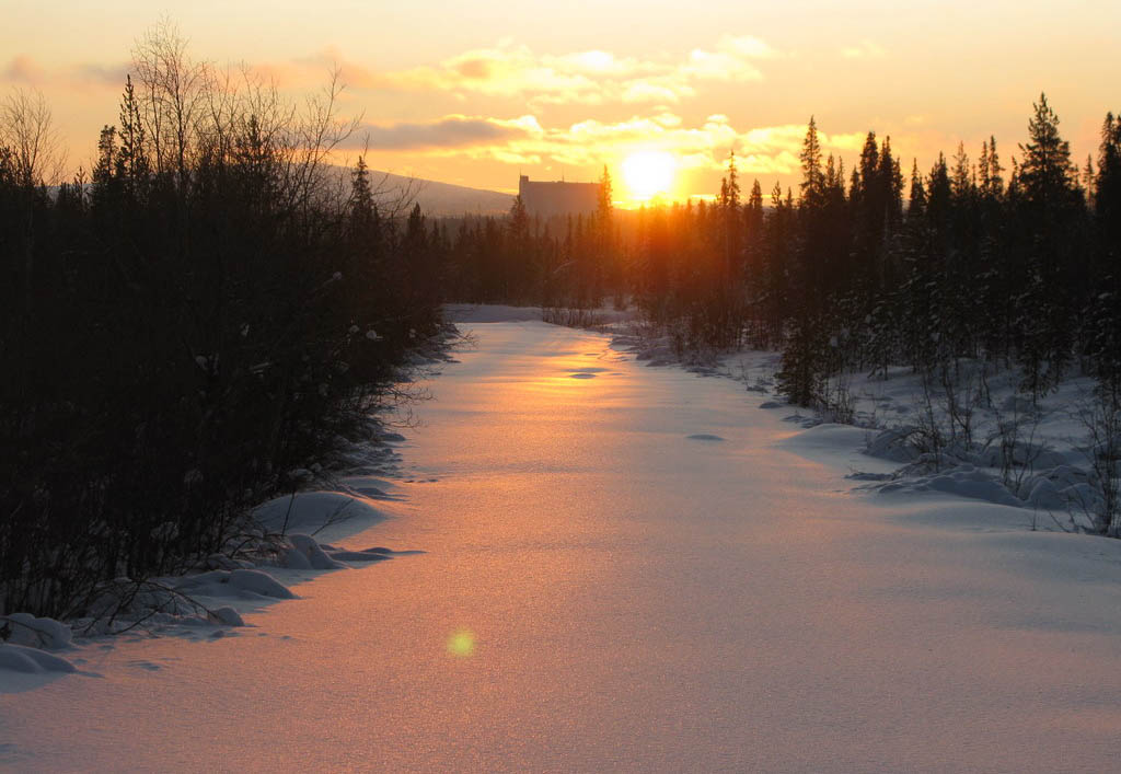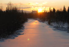 143 Восход над рекой. Вдали, слева сопка на которой стояла "Канва". 20 января 2010 года. Автор - Игорь Логинов |