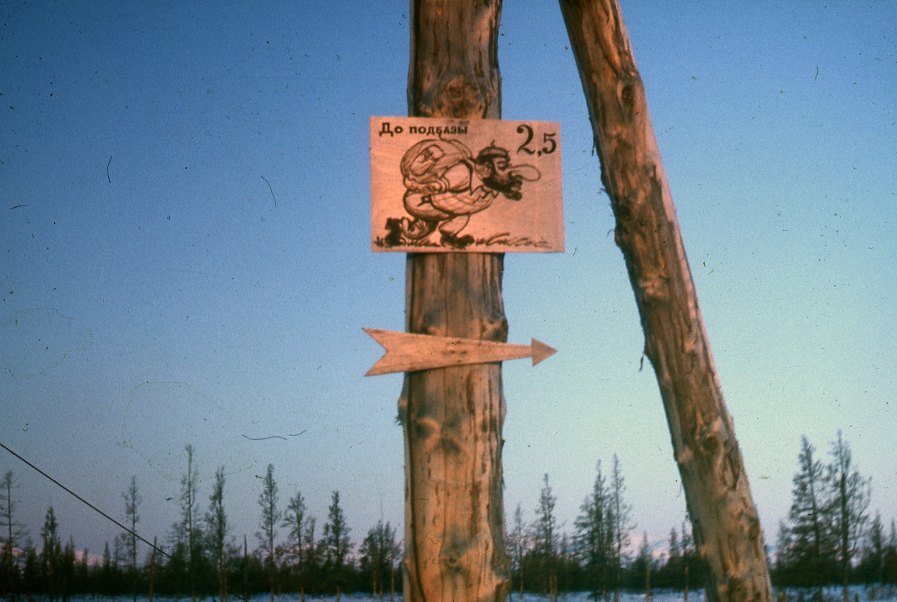 025 Дорожный указатель в аэропорту пос. Аянка. Фото А.Зиневича. 1978 год |