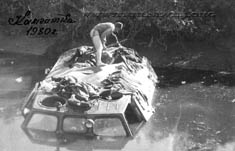 344 Прапорщик Яровой А. на крыше утопленного в протоке ГТТ. 1980 год |