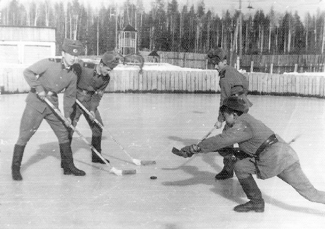 083 На хокейной площадке. О.Куулар, М.Жабко, Б.Курчан, Ч.Казырык. 1987