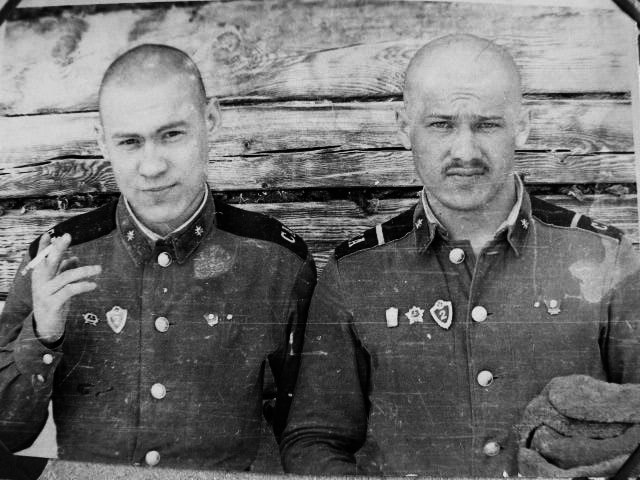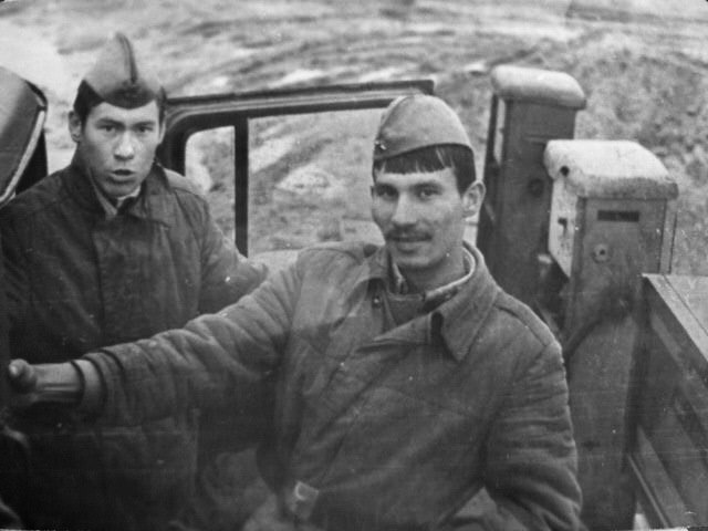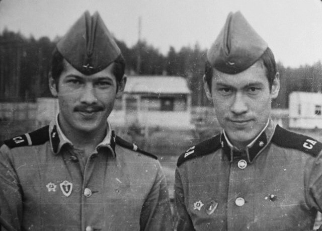 115 Ефр. Владимир Киселев и ряд. Рашид Набиулин - механики дальней связи. 1981 год |