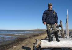 080 Прапорщик П.И.Вусатенко на берегу бухты Кожевникова. 2007 год |