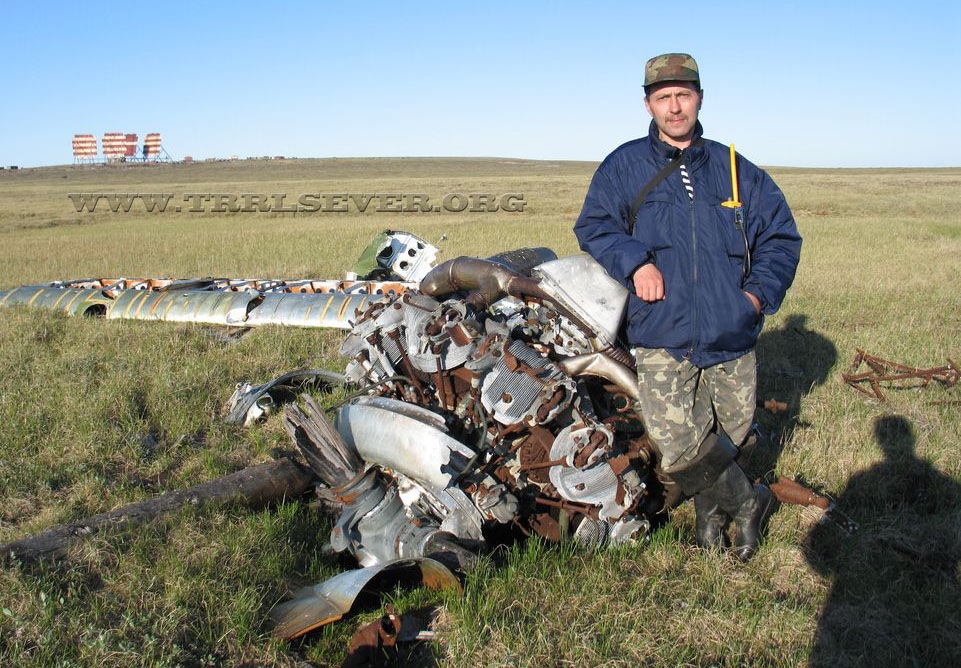 081 Прапорщик П.И.Вусатенко возле останков разбившегося самолета. 2007 год |