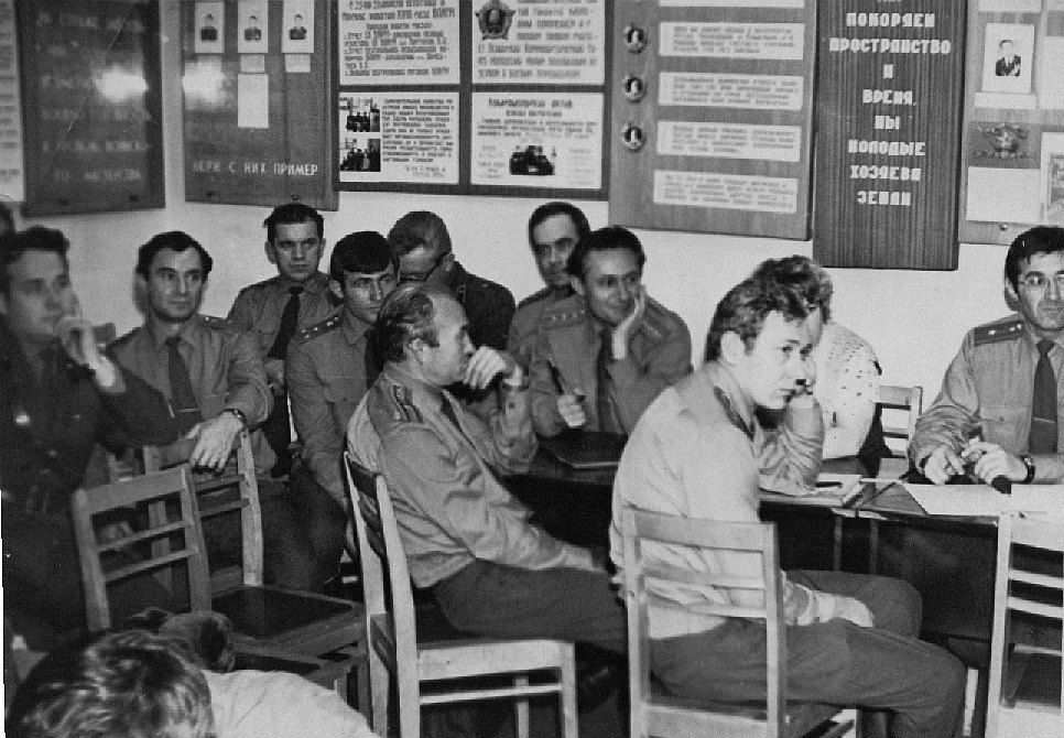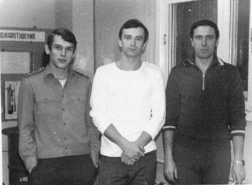 002 Регламентная группа на "Яузе" Слева ст.л-т Успенский, в середине к-н Золотов. 1981 год