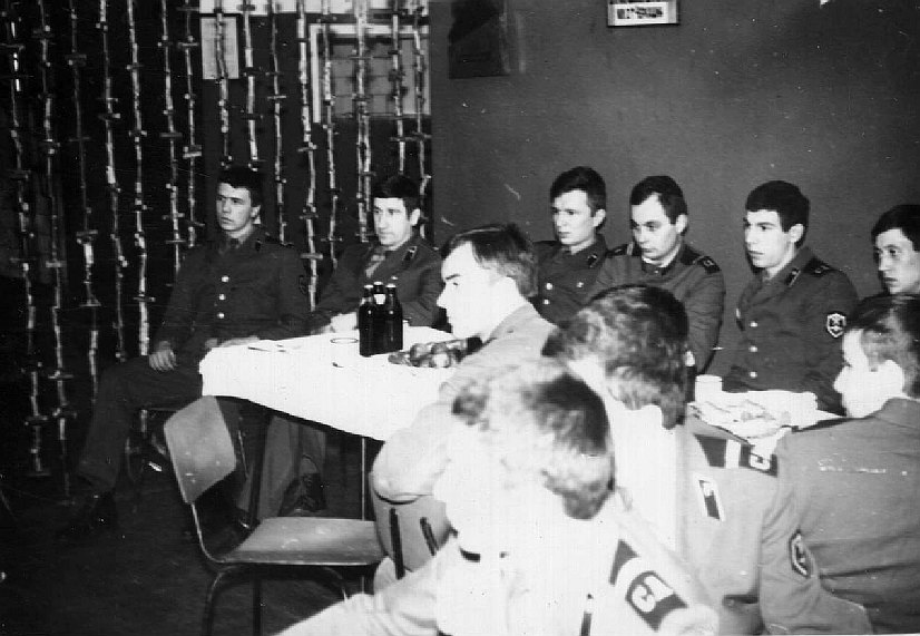 010 Вот такое безобидное начало первого увольнения нашего призыва, после которого трое или четверо угодили в комендатуру, а Парфенова (он на фото в середине, даже кефир не пьет) привезли гражданские. Он стоял возле их дома и не мог оторваться от стены. После этого в увал месяц никто не ходил... |