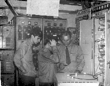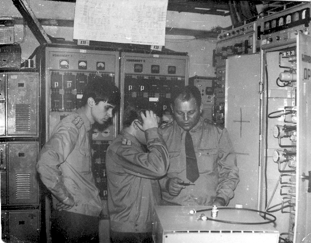 008 Л-т Титов, м-р Костюченков и (предположительно) взялся за голову ст.л-т Чудодеев решают какую-то проблему с приемником. Мульда 1976г