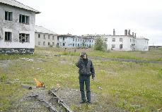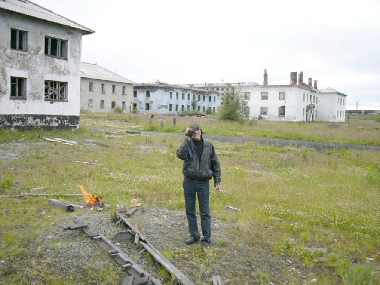 018 Виталий Токмянин возле дома, в котором жили офицеры и прапорщики "Патриота". Поселок Мульда в настоящее время закрыт. 2006 год