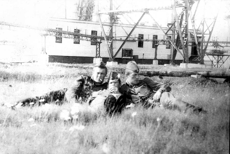 259 хоз. работы на ж/д станции Мульда. ?, ? из Воркуты, Ревкевич из Украины. 1982 год |