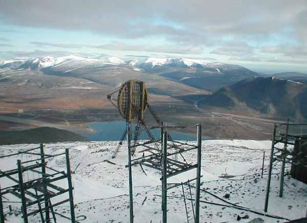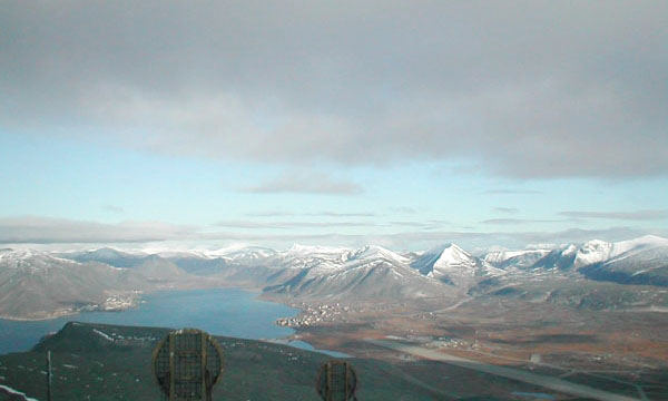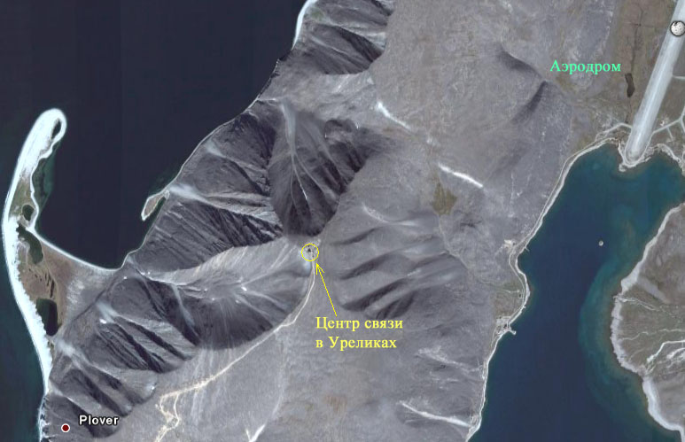 Антенны малоканальной тропосферной станции направлены на пос. Бухта Провидения. Справа видна взлетно-посадочная полоса аэродрома.