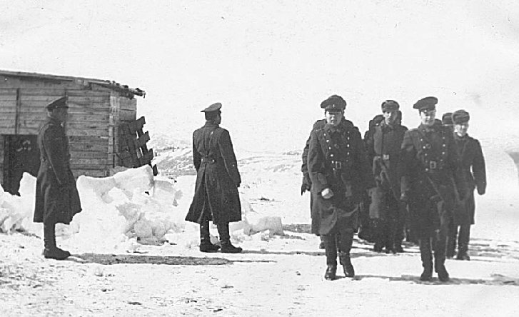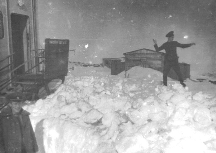 057 Строевая подготовка. Впереди – инженер-лейтенанты Шанцев (слева) и Чачин. Rio-de-Pevek, 9 мая 1971 года |