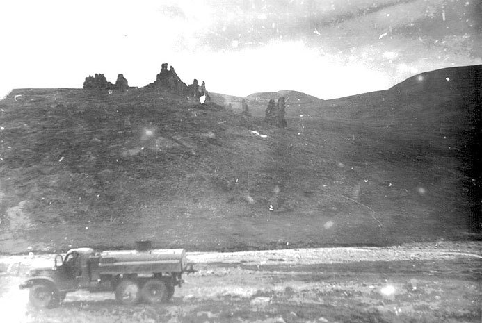 058 Остатки сторожевой вышки в лагере "Восточный". Вдали видны антенны "Граната" |
