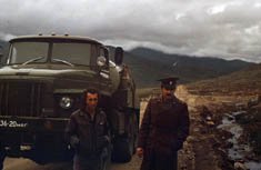 092 На пути из Певека на "Гранат". Гражданский водитель и ст.л-т Вячеслав Долгунцев. 1988 год |