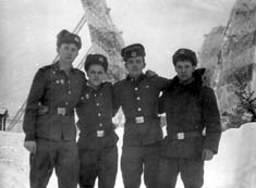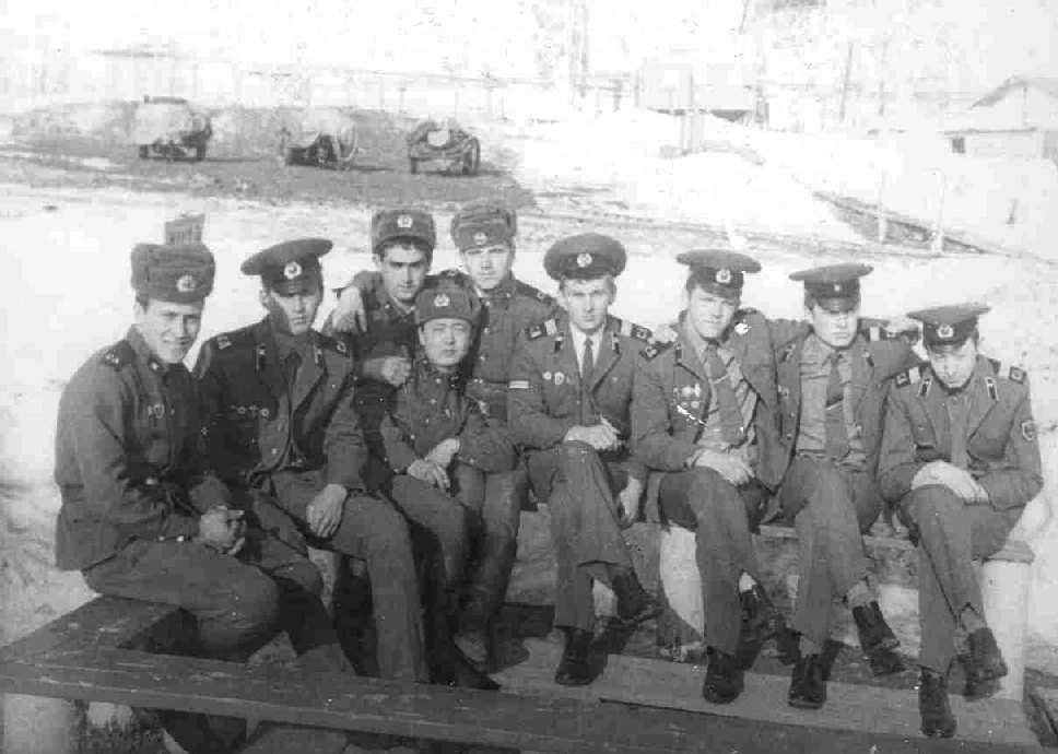 095 Геннадий Мясников, Николай Носков, Иван Улитин, Ильмурзин. У вход в казарму. 1980 год |