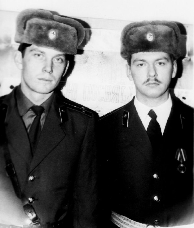086 Мл. с-т В.Клейн - командир отделения АТТ, пр-к А.Терентьев – начальник АХЧ. 1988 год |