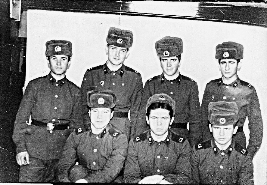 084 Отделение АТТ. Сверху второй слева ряд. Сбройный Сергей, ряд Заверюха, Внизу справа первый ряд. Клейн Петр (затем был хлебопеком) в центре ряд. Клейн Владимир |
