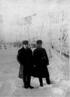 108 Антенное поле. Весна 1971 года. Слева на право: с-т Симанский Н. - техник РРС, с-т Матин А.- техник ДС |