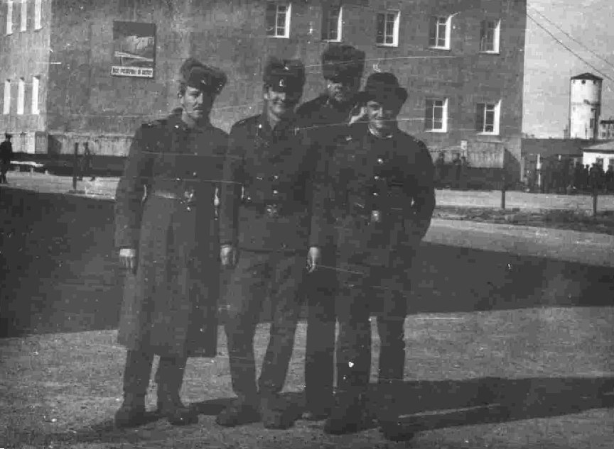 082 Январь 1984 года. В середине Михаил Пырков (призыв осень 1982). После увольнения работал на узле связи на Мысе Шмидта |