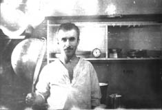 202 Сантехник Веров с китовым усом на фоне резервной котельной (подвела при пожаре 1982г). Май 1979 года |