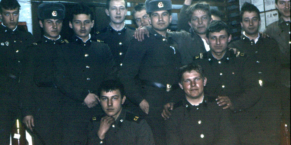 215 ? , Климов, кто-то из хозвзвода, дальник мл. с-т К.Минов, замполит. 1986 год |