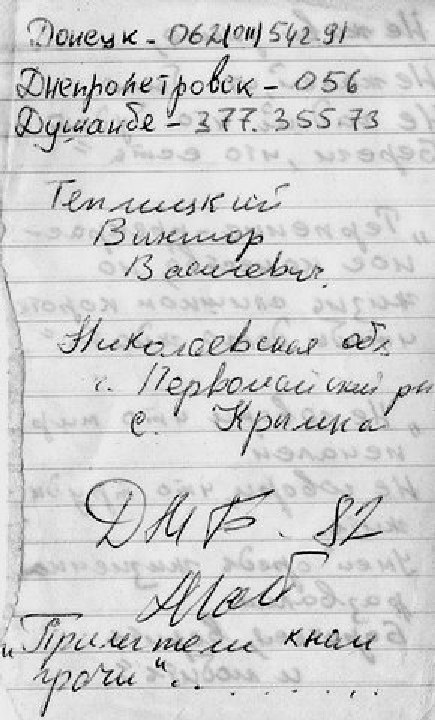 Автограф В.Теплицкого в блокноте О.Шелухина