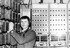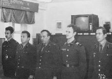 062 В техздании "Амура" располагалась и аппаратура системы «Орбита». На снимке: с-т Шелухин, ряд.Теплицкий и работник якутского телевидения. 1981 год