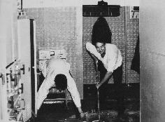073 Сдача смены в техздании молодыми радистами Г.Шаманским и М.Гераськиным. Полы должны блестеть как … сами знаете что. Декабрь 1981 года |