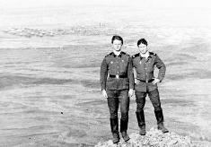 106 Олег Шелухин и Александр Синюшкин на фоне стоящих на рейде кораблей. Гора Столовая, 1981 год. |