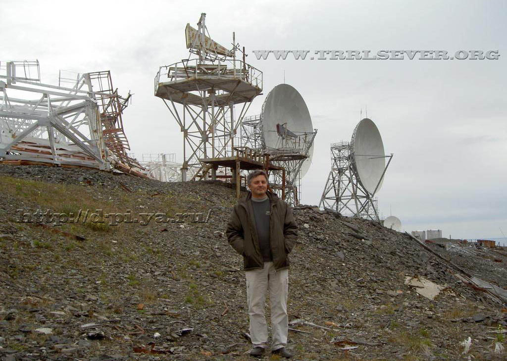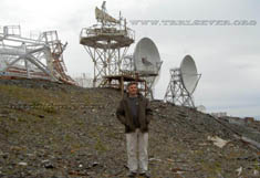 145 2008 год. Пётр Дубровский на фоне "Кварцевского" рупора, "Куларовских" антенн и спутниковой тарелки (внизу) |