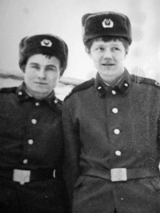 013 Капитан Филин и рядовой Филин на антенном поле (Паша и Лёша), 1992 год |